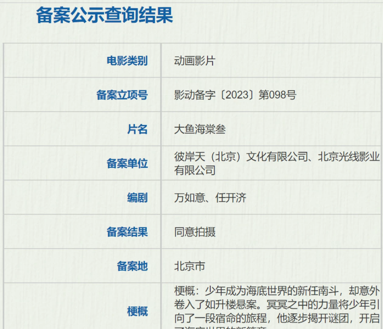 『大鱼海棠叁』动画影片 备案立项公示 动漫 10月13日 天然国家特级保护废物 取消关注 关注 私信 少年成为海底世界的新任南斗,却意外卷入了如升楼悬案。冥冥之中的力量将少年引向了一段宿命的旅程,他逐步揭开谜团,开启了海底世界的新篇章。
